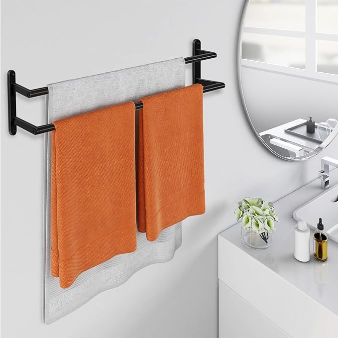 - Large & Suitable Size - The double towel bar measures 24 inches. The wider distance between the two bars makes it easy to reach the towel and the towel can dry quickly.